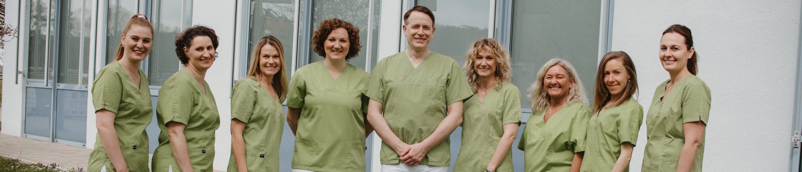 Unser elfköpfiges Team steht Ihnen bei allen Anliegen und Fragen jederzeit zur Verfügung. Dabei finden Sie in unserer Praxis alle zahnmedizinischen Fachrichtungen vereint. Wir arbeiten Hand in Hand, um Sie schonend und angenehm zu behandeln. Ob Prophylaxe, Assistenz oder Zahnheilkunde – wir halten uns in unserem Fachbereich stets auf dem neuesten Stand und besuchen regelmäßig Schulungen und Weiterbildungen. Außerdem liegt es uns sehr am Herzen, Auszubildende in ihren Lehrjahren kompetent zu begleiten.